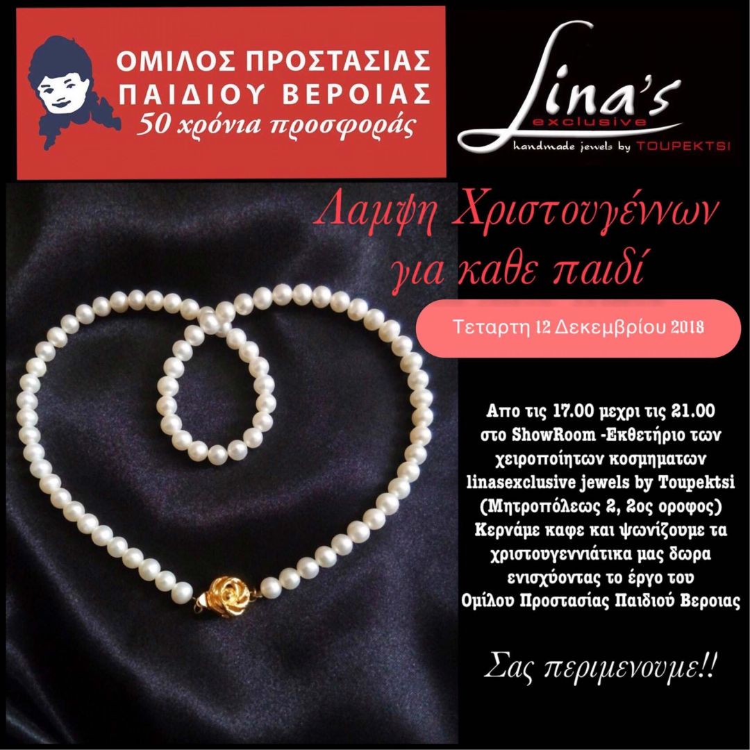 Tο Δ.Σ του Oμίλου προστασίας παιδιού Βέροιας σας προσκαλεί σε ένα απόγευμα γεμάτο λάμψη κ αλληλεγγύη.