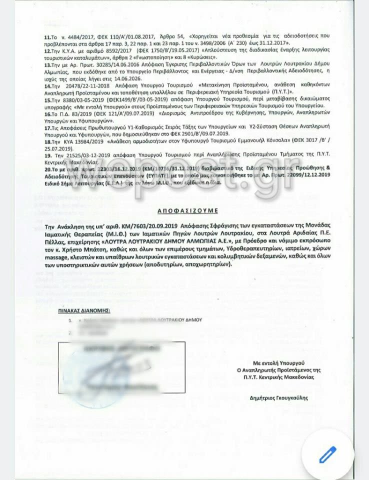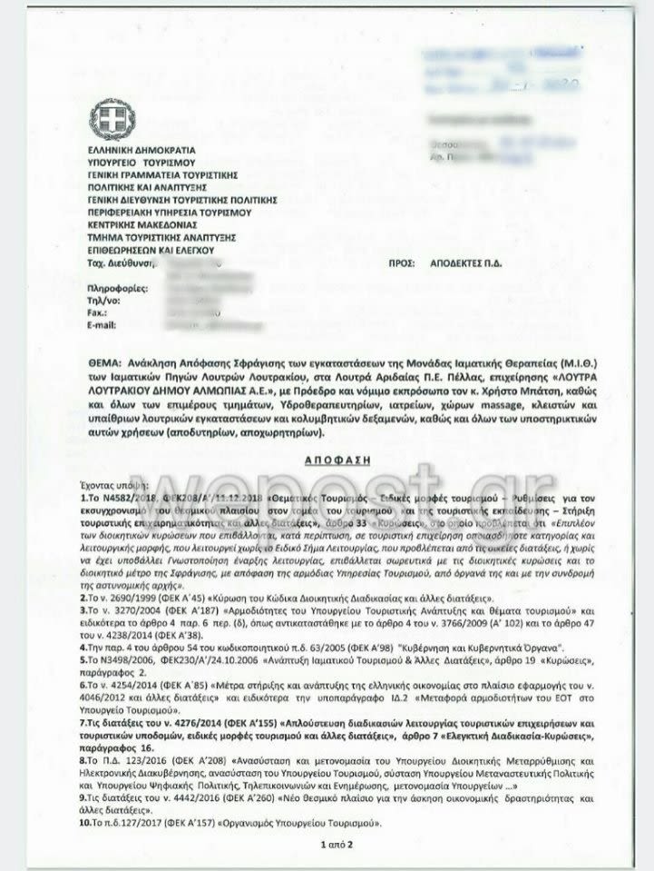 Ανακοινώθηκε επίσημα, πριν από λίγο, από τον δήμο Αλμωπείας, η ανάκληση της απόφασης σφράγισης των Λουτρών Πόζαρ.