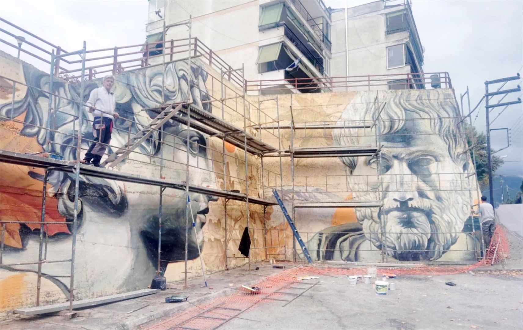 Αξιοποιώντας ως τεράστιο ζωγραφικό καμβά τους τοίχους των εργατικών κατοικιών στο Πανόραμα της Νάουσας, οι Αλέξανδρος Τσάκωνας και Θέμις Κωνσταντινόπουλος δημιούργησαν ένα εξαιρετικό καλλιτεχνικό αποτέλεσμα. Με το εντυπωσιακό τους έργο αποτύπωσαν δύο πρόσωπα σύμβολα, τον νεαρό Μ. Αλέξανδρο και τον δάσκαλό του, Αριστοτέλη. Συγχαρητήρια για την έμπνευση και την υλοποίηση του έργου και μακάρι να ακολουθήσουν και άλλες ανάλογες δημιουργίες.