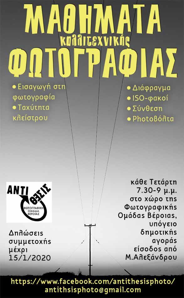 πληροφορίες και δηλώσεις συμμετοχής μέχρι 15/01/2020 στο www.facebook.com/antithesisphoto και
