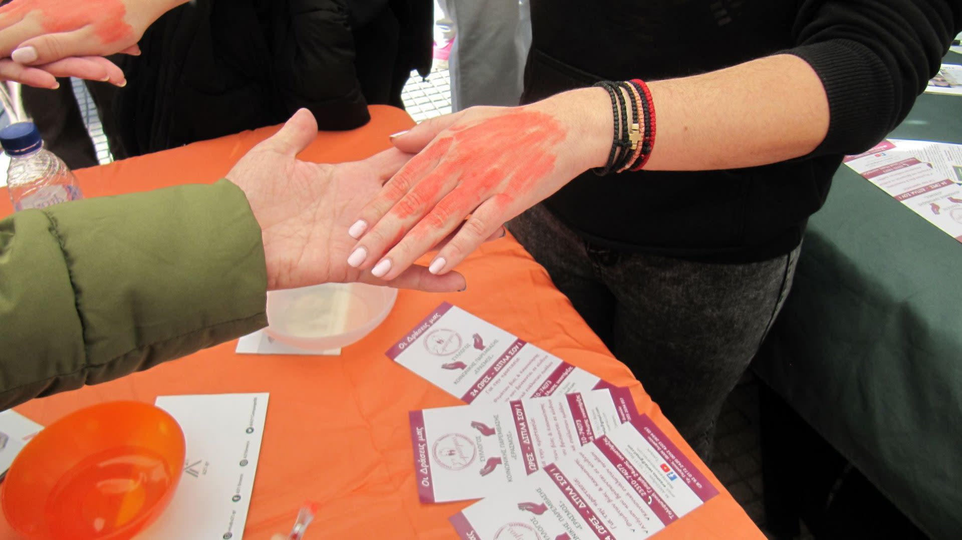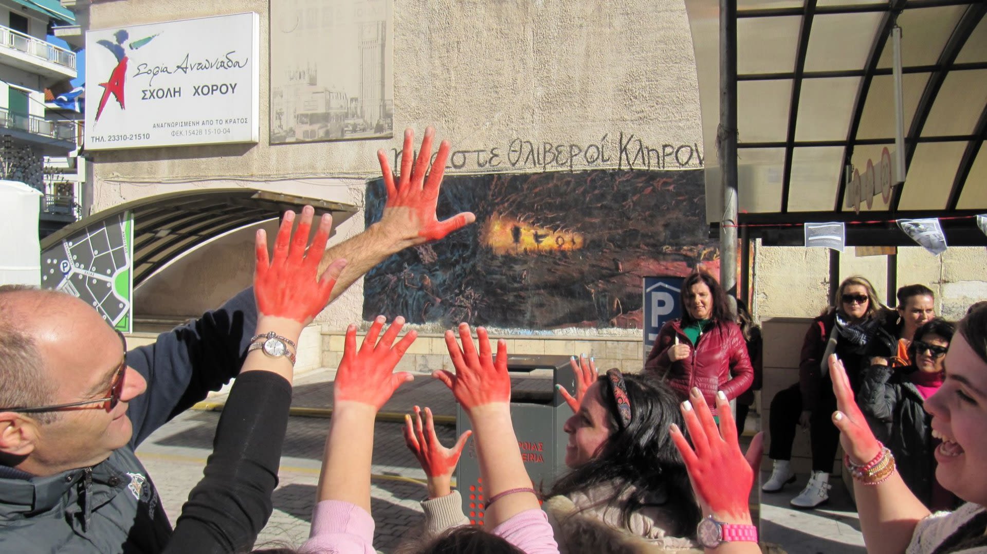 Κεντρικό concept της δράσης ο ισχυρός συμβολισμός των κόκκινων αποτυπωμάτων της έμφυλης βίας, που ειδικά στις μέρες μας παραπέμπει συνειρμικά, κυριολεκτικά αλλά και μεταφορικά, στις εκατοντάδες γυναικοκτονίες που βλέπουν σχεδόν σε μηνιαία βάση το φως της παγκόσμιας δημοσιότητας. Σ’ αυτό το πλαίσιο, μαθητές, αλλά και εργαζόμενοι του «Έρασμου» έβαψαν τα χέρια τους κόκκινα, υψώνοντάς τα ψηλά, σηματοδοτώντας με τον δικό τους τρόπο τη σημασία της μέρας, ως μια διαμαρτυρία για το άδικο αίμα των θυμάτων της φονικής βίας αλλά και ως ένα έναυσμα για εντατικό αγώνα κατά της βίας σε κάθε εκδοχή της από και προς πάσα κατεύθυνση. Παράλληλα διανεμήθηκε έντυπο ενημερωτικό υλικό από τους εργαζόμενους του «Έρασμου» και της Α21 σε δεκάδες περαστικούς.