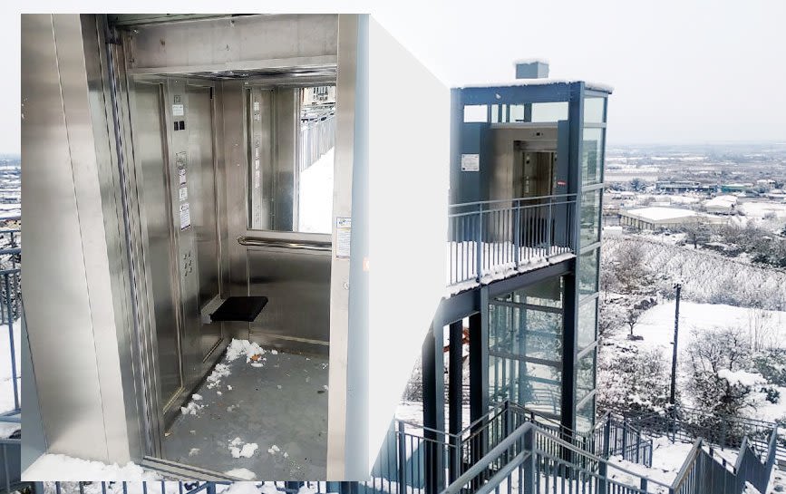 Δεν γνωρίζουμε αν η φυσιολογική θέση αναμονής του ασανσέρ στην Εληά είναι με ανοιχτή την πόρτα, πάντως η εικόνα λόγω αυτής της αιτίας στο εσωτερικό του θαλάμου του ασανσέρ ήταν άσχημη. Χιόνια, λάσπες μέχρι και σκουπίδια μέσα στον θάλαμο με την πόρτα του ασανσέρ να παραμένει συνεχώς ανοιχτή για όση ώρα ήμασταν εκεί. Είτε πρόκειται για βλάβη, είτε για την φυσιολογική θέση του ασανσέρ, σε κάθε περίπτωση το αποτέλεσμα είναι αυτό και καλό θα ήταν να υπάρξει παρέμβαση για να είναι κλειστή η πόρτα και να προστατεύεται ο θάλαμος όταν δεν χρησιμοποιείται.