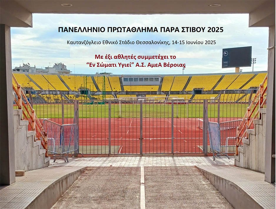 Το “Εν Σώματι Υγιεί” Α.Σ. ΑμεΑ Βέροιας συμμετέχει με μεγάλη ομάδα έξι αθλητών και ενός συνοδού-αθλητή (guide-runner) με μπροστάρηδες τον παραολυμπιονίκη Δημήτρη Ζησίδη και τον νεαρό Νίκο Ντίσιο, αθλητές που έχουν ήδη προκριθεί για το Παγκόσμιο Πρωτάθλημα Παρα Στίβου 2025.