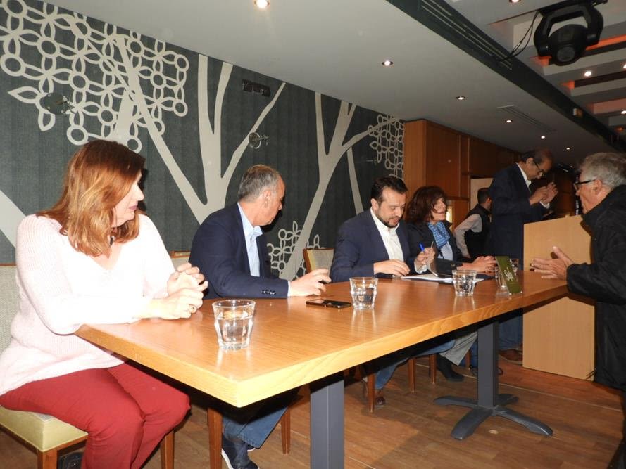 Στην αίθουσα της “Ελιάς” βρισκόταν και ο υφυπουργός Άγγελος Τόλκας, ο οποίος αποχώρησηε μόλις χαιρέτησε τον υπουργό και λίγο πριν ξεκινήσει η ομιλία του κ. Παπά, τον οποίο προλόγισε ο κ. Κωστόπουλος της Ν.Ε. Ημαθίας. Στο πάνελ με τον υπουργό ήταν οι βουλευτές Φρ. Καρασαρλίδου και Χρ. Αντωνίου, ο συντονιστής Ημαθίας Τ. Κωστόπουλος και η Εύη Παπαγιαννούλη.