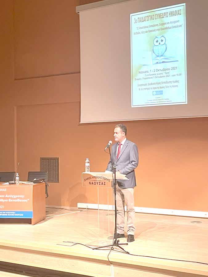 Ολοκληρώθηκαν με μεγάλη επιτυχία οι εργασίες του 3ου Παιδαγωγικού Συνεδρίου με τίτλο «Εξ’ Αποστάσεως Εκπαίδευση, Σύγχρονη και Ασύγχρονη: Μέθοδοι, Ιδέες και Πρακτικές στην Πρωτοβάθμια Εκπαίδευση», το οποίο διοργανώθηκε από τη Διεύθυνση Πρωτοβάθμιας Εκπαίδευσης Ημαθίας, με την υποστήριξη του Δήμου της Ηρωικής Πόλης της Νάουσας, στις 1 και 2 Οκτωβρίου του 2021.