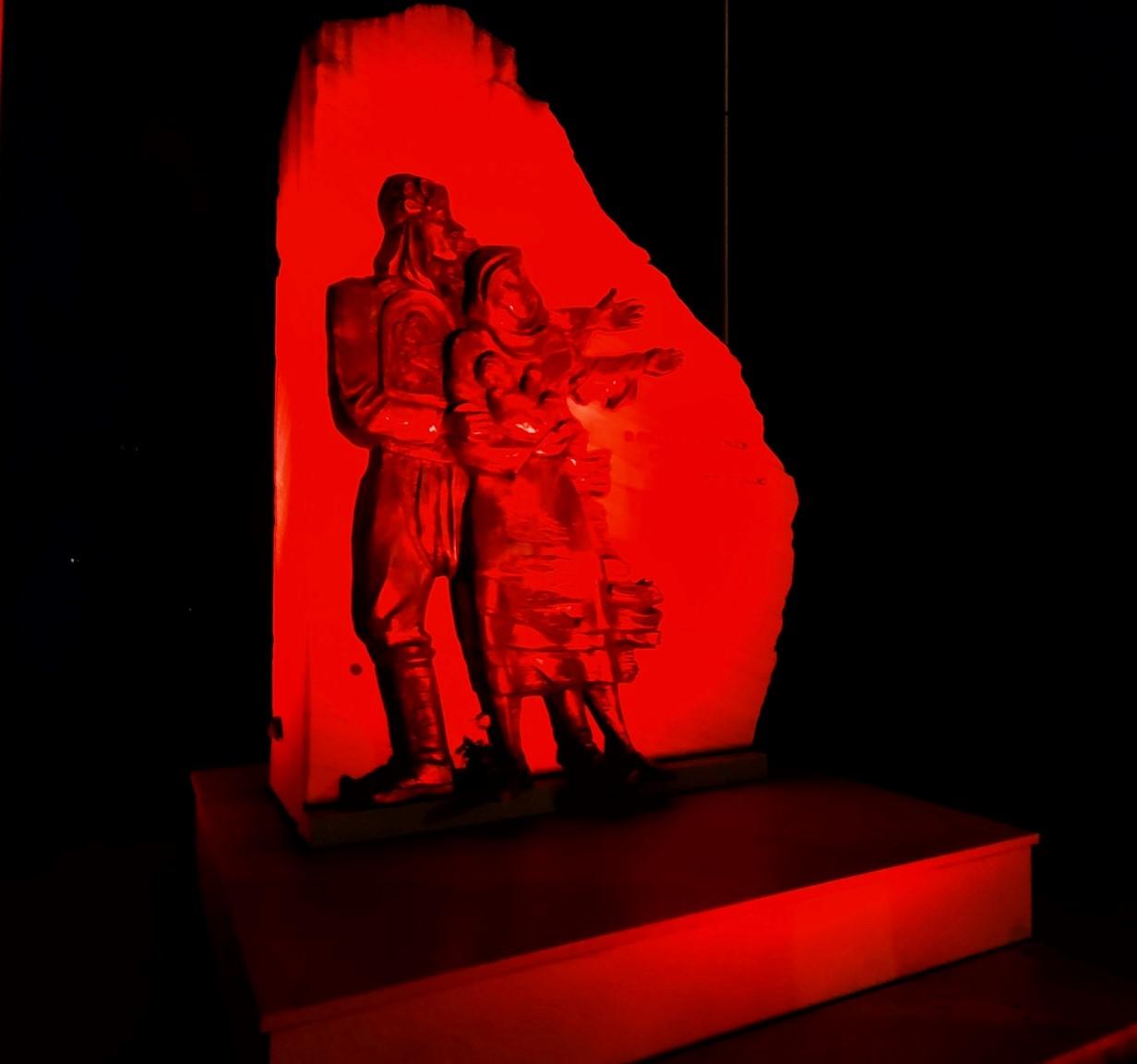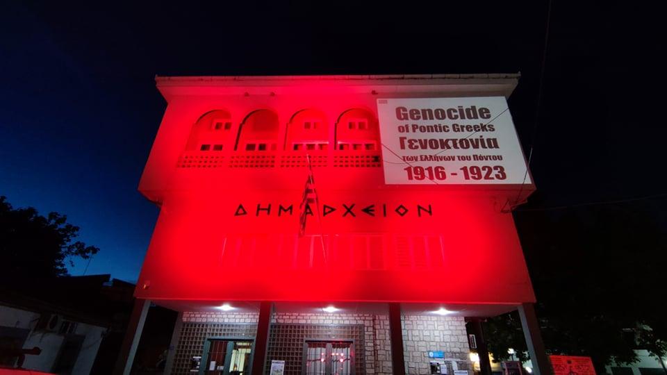 κτίριο του δημαρχείου και το μνημείο φωταγωγήθηκαν με κόκκινο χρώμα,