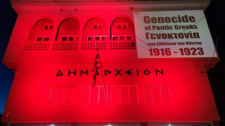 Ελλήνων του Πόντου, με την συμβολική φωταγώγηση της πρόσοψης του κτιρίου