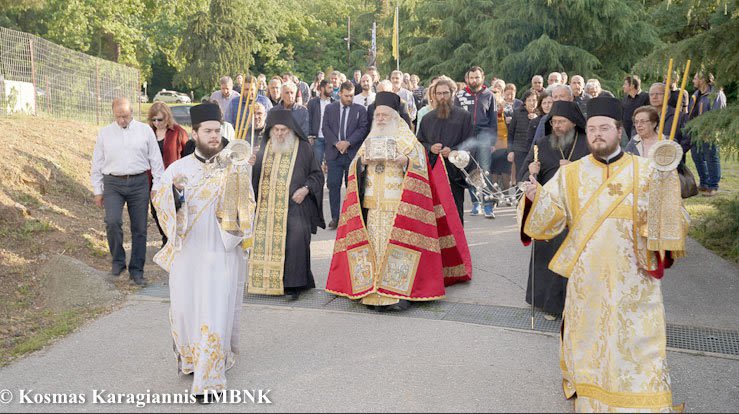 Την Τιμία Κάρα κόμισε από την Ιερά Μονή Παναχράντου Άνδρου, όπου φυλάσσεται, ο Καθηγούμενος της Ιεράς Μονής Γέροντας Ευδόκιμος και την υποδέχθηκε ο Ποιμενάρχης μας, Σεβασμιώτατος Μητροπολίτης Βεροίας, Ναούσης και Καμπανίας κ. Παντελεήμων, παρουσία κληρικών, μοναχών, τοπικών πολιτικών αρχών και ευλαβών προσκυνητών.
