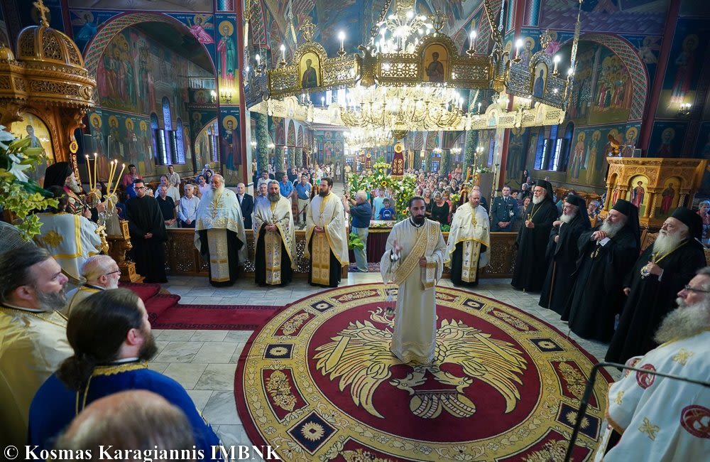 Στον Πολυαρχιερατικό Εσπερινό χοροστάτησε ο Σεβασμιώτατος Μητροπολίτης Μάνης κ. Χρυσόστομος και συμμετείχαν οι Σεβασμιώτατοι Μητροπολίτες Ιλίου, Αχαρνών και Πετρουπόλεως κ. Αθηναγόρας, ο οποίος κήρυξε τον θείο λόγο, Νικοπόλεως και Πρεβέζης κ. Χρυσόστομος, Λαγκαδά, Λητής και Ρεντίνης κ. Πλάτων και ο Ποιμενάρχης μας,  Σεβασμιώτατος Μητροπολίτης Βεροίας, Ναούσης και Καμπανίας κ. Παντελεήμων.