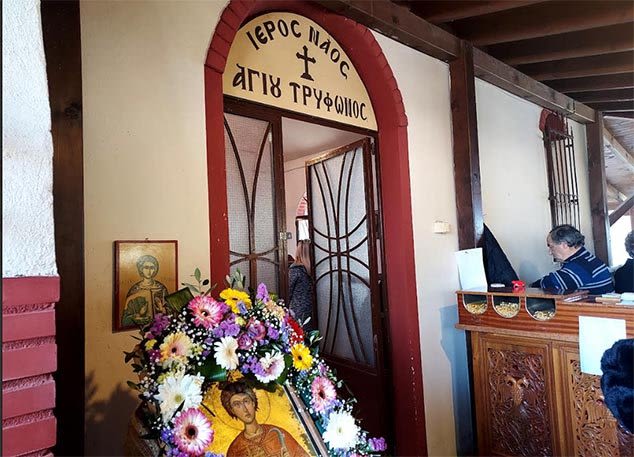Ακολούθησε το παραδοσιακό «κουρμπάνι» που οργάνωσε ο Πολιτιστικός Σύλλογος του χωριού «Ο Καρατάσος» και η Εκκλησιαστική Επιτροπή και στους πολυπληθείς επισκέπτες προσφέρθηκε ένα σακουλάκι με σταφύλια αλλά και κρέας, αφού ο Αι Τρύφωνας θεωρείται στην περιοχή και προστάτης των κτηνοτρόφων.