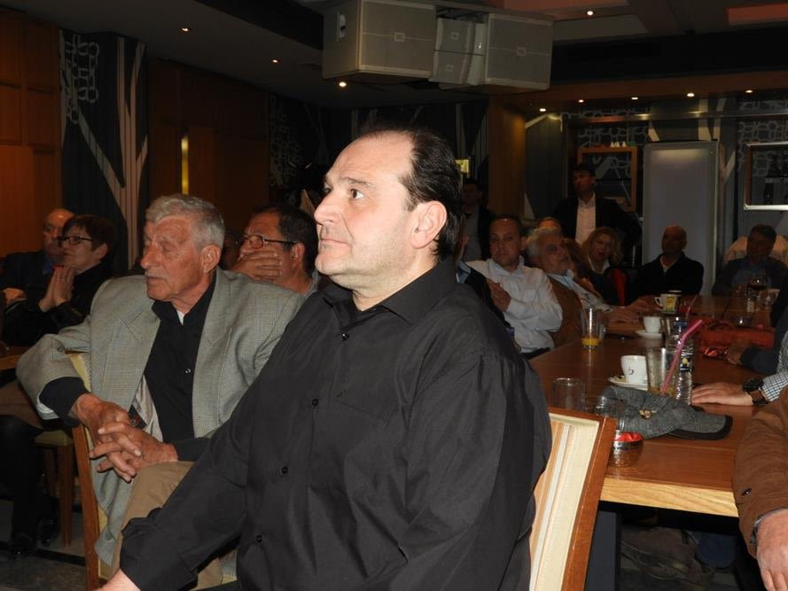 Στο πρώτο τραπέζι ο υποψήφιος δήμαρχος Βέροιας Αντώνης Μαρκούλης, απέναντι ακριβώς από τον υπουργό Ν. Παπά, ο οποίος του απευθυνόταν κατά τη διάρκεια της ομιλίας του, προσφωνώντας τον «δήμαρχε».