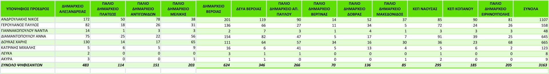 Από τους συνολικά 3.163 ψηφίσαντες σε όλη την Ημαθία έλαβαν: