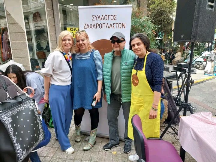 Στη φωτο, ο ακούραστος πρόεδρος των Ζαχαροπλαστών Τάσος Παγούρας, η σεφ Χριστίνα Μάλλιου, η σεφ Μαρία Κόγια και η Γιάννα Πιλιτσίδου.