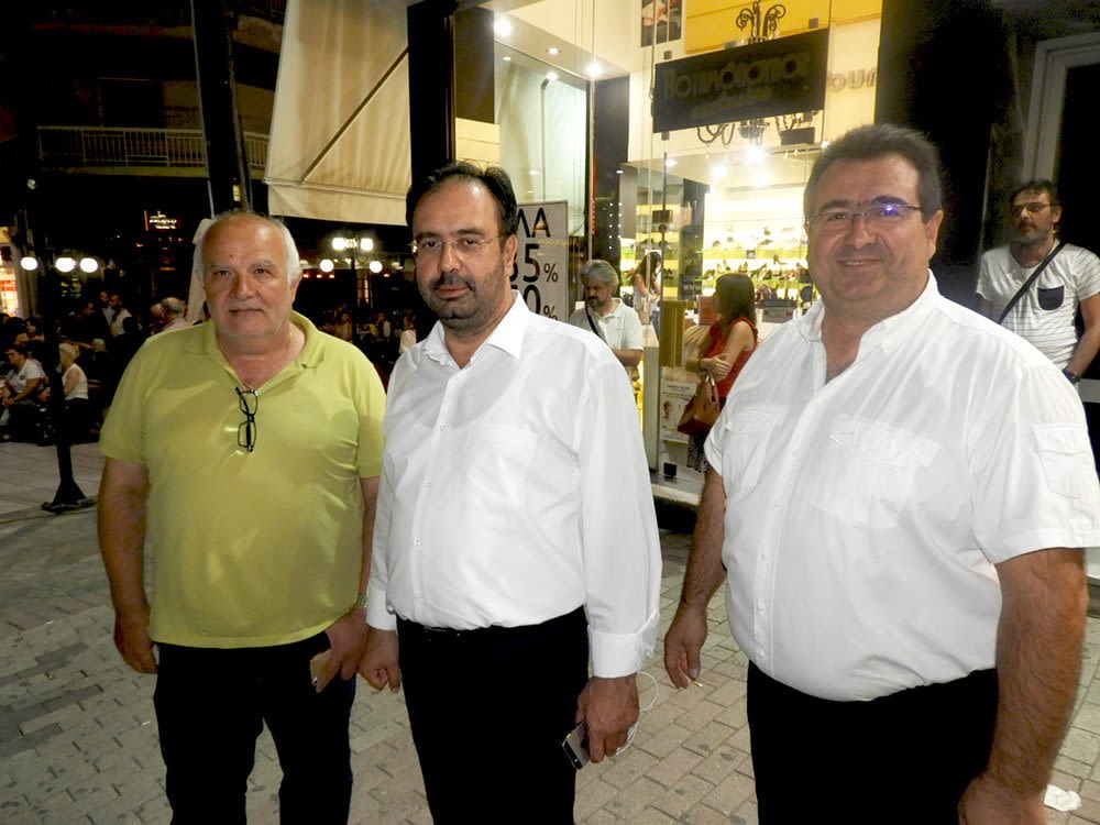 Ο φακός του ΛΑΟΥ συνέλαβε επίσης στην συμβολή Ιπποκράτους και Προφ. Ηλία τον δήμαρχο Κώστα Βοργιαζίδη, τον αντιδήμαρχο Βασίλη Παπαδόπουλο και τον πρόεδρο του ΚΑΠΑ Στέργιο Διαμάντη, να απολαμβάνουν την βόλτα στους εμπορικούς δρόμους της πόλης και να μιλούν με τον κόσμο.