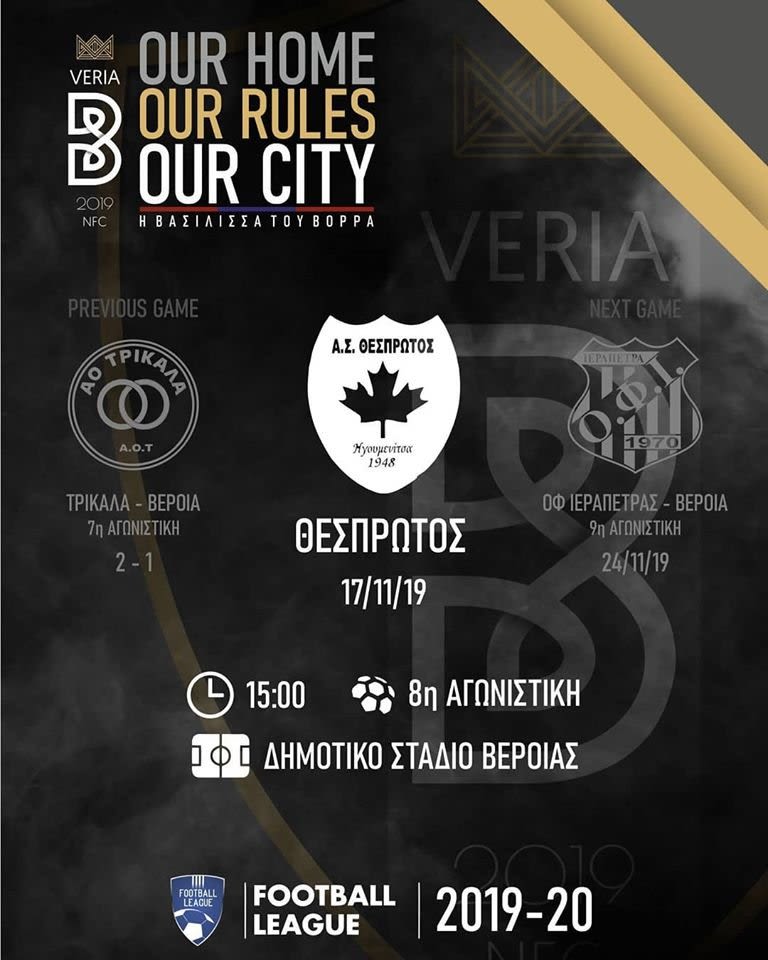Με στόχο την νίκη η Βέροια την Κυριακή υποδέχεται τον Θεσπρωτό