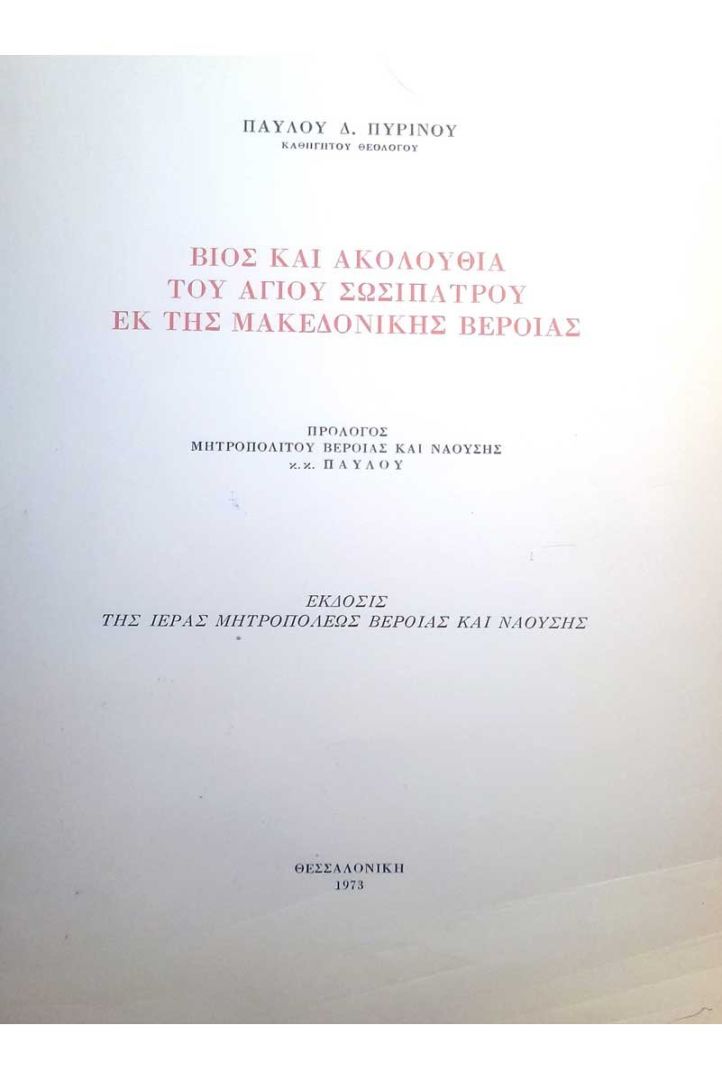 (Πρόλογος Μητροπολίτου Βεροίας, Ναούσης κ.κ. Παύλου, Θεσσαλονίκη 1973).
