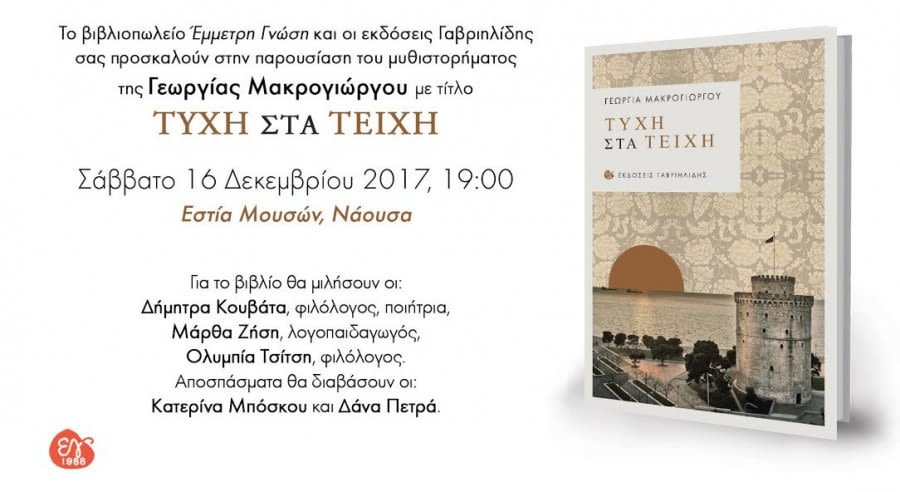 Απόσπασμα από το βιβλίο “Τύχη στα Τείχη” της Γεωργίας Μακρογιώργου, που θα παρουσιαστεί το Σάββατο στις 7μμ στην Εστία Μουσών.
