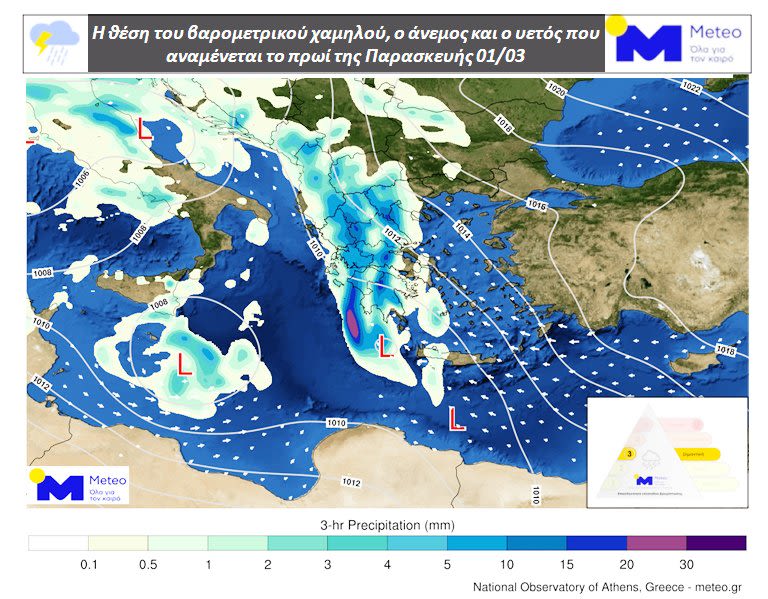 Από χθες το απόγευμα ξεκίνησε η μεταβολή του καιρού που θα διαρκέσει έως αύριο Σάββατο, σύμφωνα με την ΕΜΥ, με ισχυρές κατά τόπους βροχές με σημαντικά αθροιστικά ύψη υετού (φαινόμενο της πτώσης νερού σε υγρή μορφή ή και σε πάγο) θα εκδηλωθούν στη Μακεδονία και ιδιαίτερα στα δυτικά τμήματα της Κεντρικής Μακεδονίας. Όπως φαίνεται και στον σχετικό χάρτη, στους νομούς Πέλλας, Ημαθίας και Πιερίας ο αθροιστικός υετός προβλέπεται να ξεπεράσει κατά τόπους τα 150 χιλιοστά.