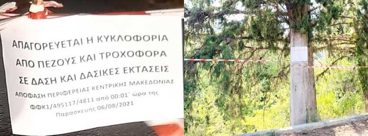 Μάλιστα στα άλση, όπως στην περιοχή Παπάγου της Βέροιας, οι είσοδοι έχουν ήδη κλείσει με κόκκινες κορδέλες, με την ένδειξη απαγόρευσης της κυκλοφορίας και γίνεται καταγραφή των πινακίδων όλων των οχημάτων που κινούνται στο δάσος.