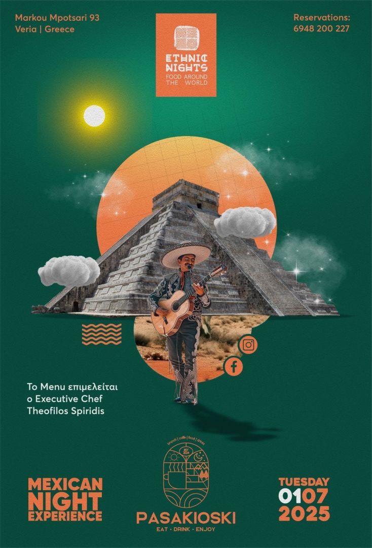 Φέτος, το Pasakioski Garden ανεβάζει τον πήχη και εγκαινιάζει θεματικές βραδιές γεμάτες γεύση.! Ξεκινάμε με ένα μεξικάνικο βράδυ γεμάτο έντονα αρώματα, εξωτικές γεύσεις και μουσική που θα σας ταξιδέψουν απευθείας στην Βόρεια Αμερική και το Μεξικό.!