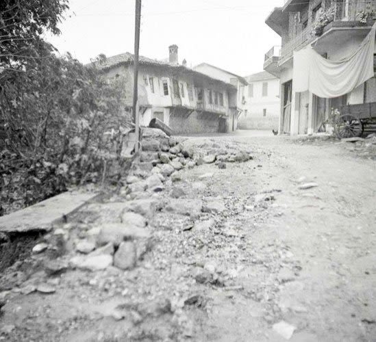 Άποψη δρόμου Βέροιας. Οδός Δημοσθένους. Στη γωνία δεξιά το σπίτι του Ζωγιού. Στο βάθος της οικογένειας Ψιψίκα. Αρχές δεκαετίας του ΄70 ή τέλη του ‘60. Το κάρο, η κότα, τα χαλάσματα, άλλες εποχες…