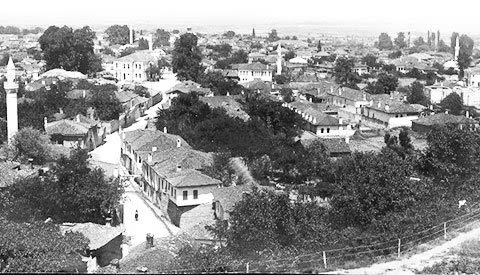 Βέροια, δεκαετία του 1920. Μια άλλη εικόνα, ειδυλλιακή από μια πρώτη ματιά. Εντύπωση προκαλούν οι πολλοί μιναρέδες στην πόλη, κατάλοιπο της τουρκοκρατίας. Στο κέντρο της φωτογραφίας διακρίνεται η πλατεία ωρολογίου με το μέχρι πρότινος δικαστήριο και πίσω από το πλάτανο που δεσπόζει στην πλατεία διακρίνεται η κορυφή του «ωρολογίου». Το «ρολόι» όπως όλα δείχνουν ήταν ίσως το ψηλότερο κτίσμα της εποχής στην πόλη και για το λόγο αυτό προσελκούσε το ενδιαφέρον κάθε επισκέπτη της πόλης και ήταν το πιο πολυφωτογραφημένο σημείο της