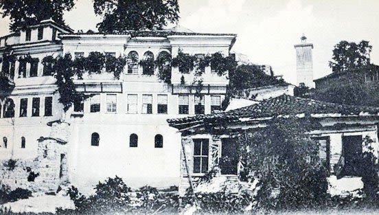 Η κάτω είσοδος προς την Εβραική συνοικία, προς την Συναγωγή. Στο βάθος το ρολόι. Βέροια 1915.