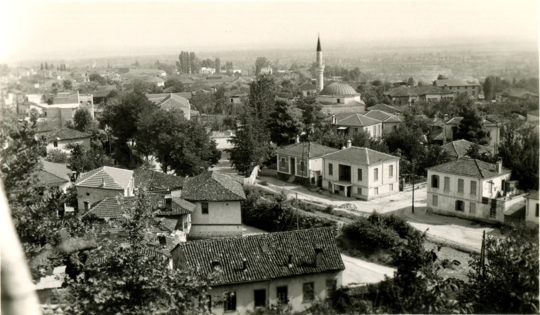 Μια ωραία καρτ ποστάλ νεώτερης εποχής (1954) που συγκεντρώνει το Δημοτικό Σχολείο, το Μεντρεσέ Τζαμί και τα κυπαρίσσια του Βήματος Αποστ. Παύλου (δεν φαίνεται). Αξιοπρόσεκτο το ανοιχτό ρέμα, που έρχεται από τα μπατάνια και τους μύλους της περιοχής Παπάκια προς το μύλο του Ηλία Ζάφογλου, αλλά δεν επιτρέπει την προέκταση της οδού Σιόρ Μανωλάκη να συναντήσει την Μαυρομιχάλη. Στο βάθος το Βυζαντινό Μουσείο.