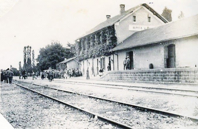 Σιδηροδρομικός Σταθμός Βέροιας, η κατασκευή του ξεκίνησε το 1891 και ολοκληρώθηκε το 1894 κατά την περίοδο της Οθωμανικής Αυτοκρατορίας. Κατά τις αρχές του 20ου αιώνα εξυπηρετούσε ένα μεγάλο κομμάτι του πληθυσμού. Ήταν και σημαντικός κόμβος ανεφοδιασμού και μεταφοράς αγαθών και εμπορευμάτων, ιδιαίτερα σε περιόδους συρράξεων. Η φωτογραφία μας μεταφέρει στο μακρινό 1918