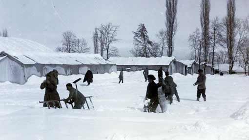 Χειμώνας του 1918. Στρατώνες κάτω από το χιόνι. Στρατιώτες στο χιόνι για εργασίες αλλά και για παιχνίδι