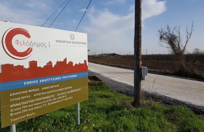 έργο αγροτική οδοποιία στο «Αγρόκτημα Τριλόφου Δήμου Βέροιας» μήκους 872, 7 μ.