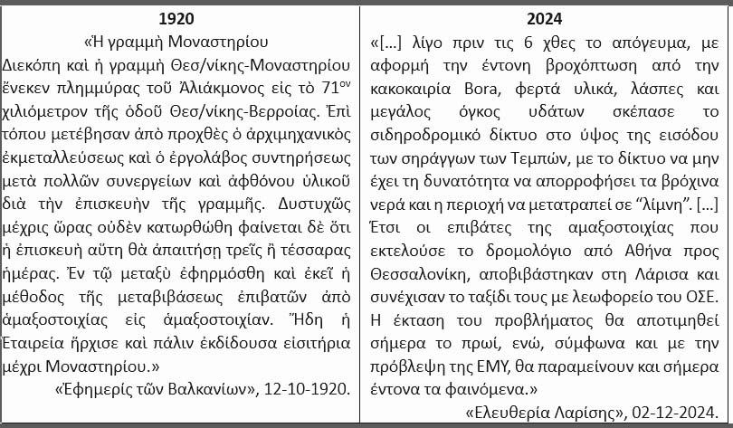 1920: Η σιδηροδρομική σύνδεση Θεσσαλονίκης-Μοναστηρίου διακόπτεται λόγω υπερχείλισης ποταμού.