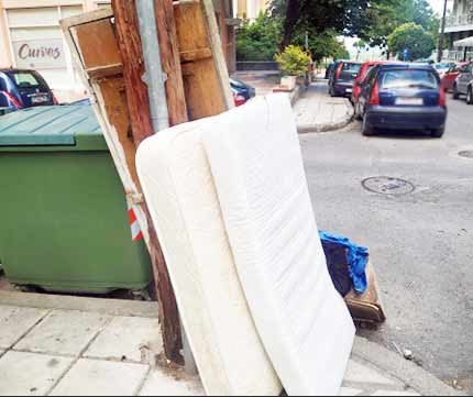Σημ.: Οι φωτογραφίες είναι από χθες το μεσημέρι στην συμβολή των οδών Παστέρ και Κωττουνίου, με 2 στρώματα, σπασμένα ντουλάπια και μια σαρακοφαγωμενη ξύλινη πόρτα με κάσωμα…νοικοκυρεμένα πράγματα!!!