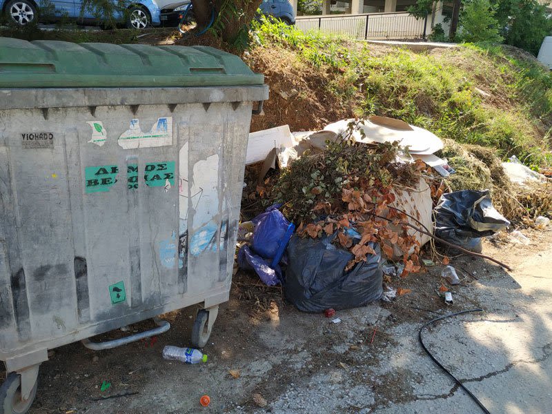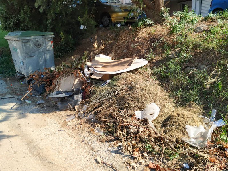 Σε αυτήν την κατάσταση, ήρθαν να προστεθούν μπάζα, μεγάλα χαρτοκούτια και πλέον κοινά πλαστικά σκουπίδια, που δυστυχώς πετούν οι διερχόμενοι.