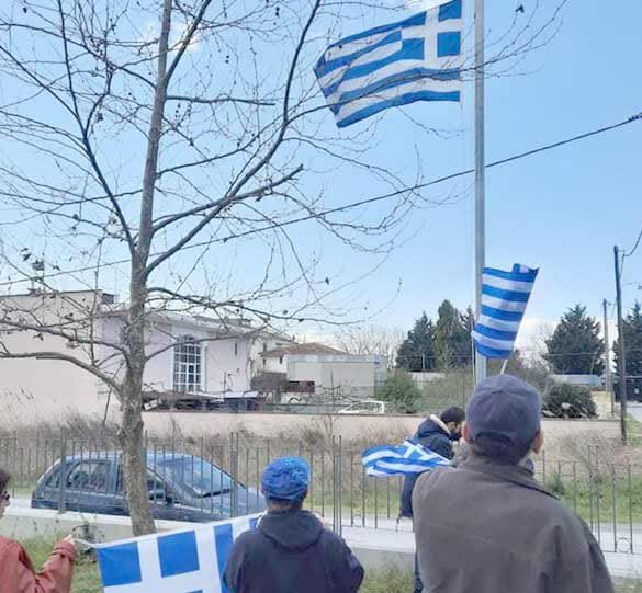 απήγγειλαν τον εθνικό ύμνο υπό το φως της γαλανόλευκης σημαίας και στη συνέχεια
