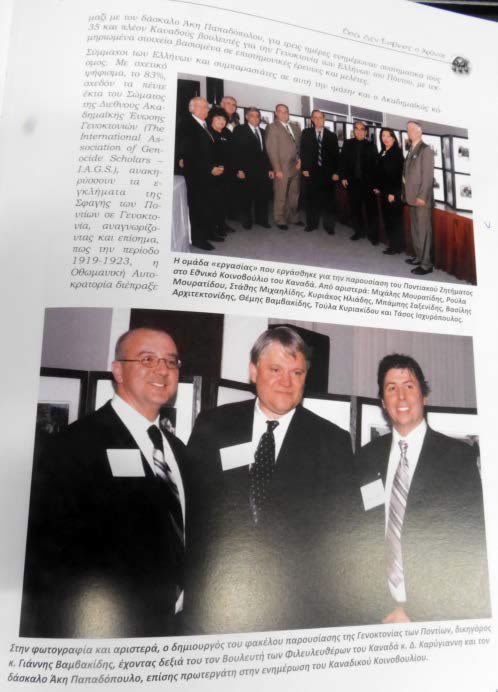Συμμετείχε στην ομάδα «εργασίας» που εργάστηκε για την παρουσίαση του Ποντιακού Ζητήματος στο Εθνικό Συμβούλιο του Καναδά.