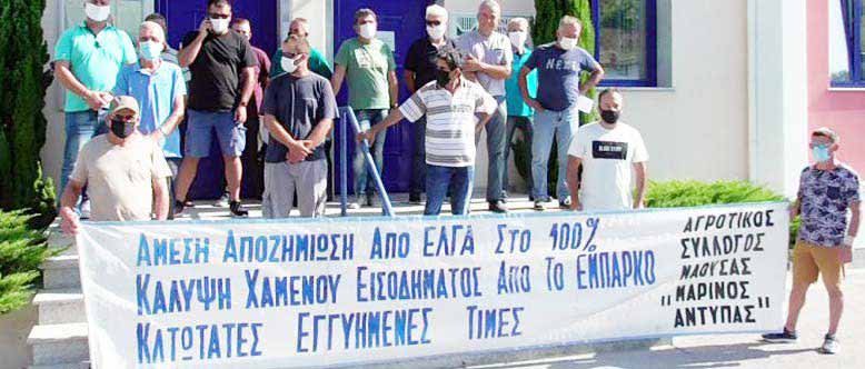 Οι αγρότες κατέθεσαν υπόμνημα στην προϊσταμένη του υποκαταστήματος του ΕΛΓΑ Βέροιας κα Μαρία Παππά, με το οποίο κάνουν γνωστά τα αιτήματα τους, με κύριο, την αποζημίωση των παραγωγών από τις ζημιές που υπέστησαν οι καλλιέργειες λόγω των έντονων και άκαιρων βροχοπτώσεων. Κατά την διαμαρτυρία τηρήθηκαν τα προβλεπόμενα μέτρα προστασίας για τον κορωνοϊό.