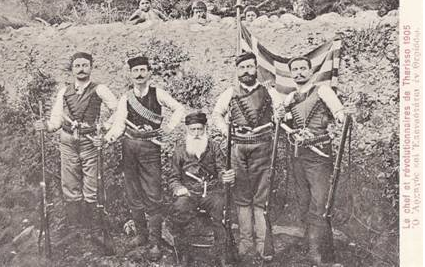 Τον Ιούνιο του 1903 περνούν τα σύνορα της Ελλάδος και μπαίνουν στη Μακεδονία δέκα ντελικανήδες Κρητικοί υπό τον καπετάν Θύμιο Καούδη. Φτάνουν στη Μακεδονία, ως πρωτοπόροι της αφυπνιζόμενης Ελλάδας. Αυτοί συγκροτούν το πρώτο ανταρτικό σώμα από την Ελλάδα. Ενισχύουν το σώμα του καπετάν Βαγγέλη και συνοδεύουν το Μητροπολίτη Καστοριάς στις περιοδείες του στα χωριά… Τον Αύγουστο του 1904 νέο σώμα από 14 οπλαρχηγούς εισέρχεται στη Μακεδονία και αρχίζει αμέσως πολεμική δράση. Σε όλη τη διάρκεια της ένοπλης αναμέτρησης μέχρι το 1908 ένοπλες και αλλεπάλληλες μαχητικές φάλαγγες εισέρχονται στη Μακεδονία»… «Η ψυχή των Κρητικών τραυματισμένη από την ήττα του ΄97 πίστευε ότι η Μακεδονία είναι ο τόπος της εκδίκησης». 4