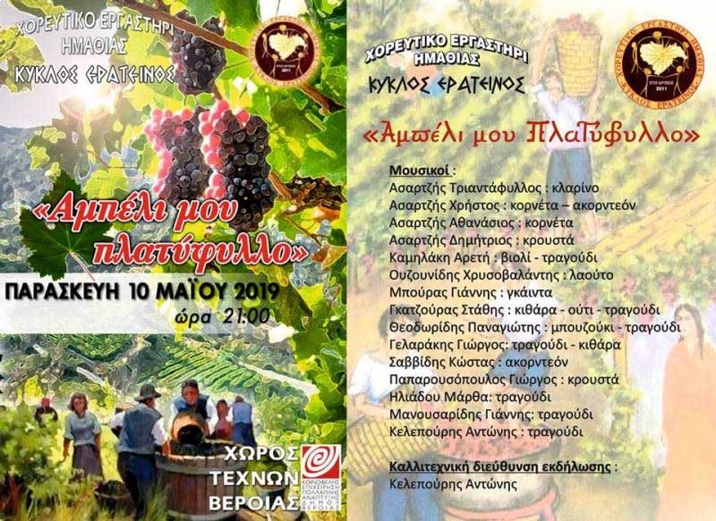 Μουσικοχορευτική εκδήλωση του χορευτικού εργαστηρίου “Κύκλος Ερατεινός” – «Αμπέλι μου πλατύφυλλο»