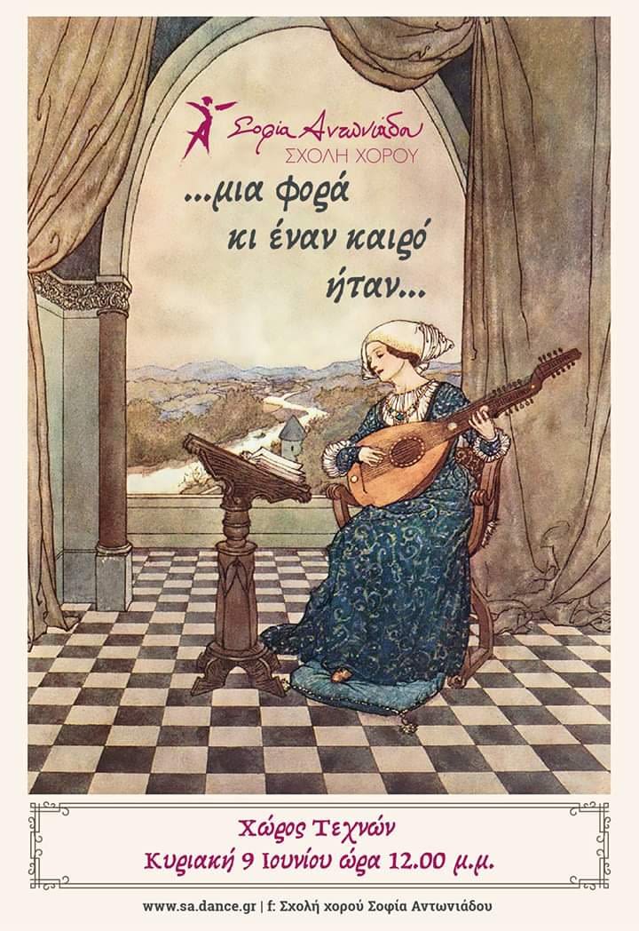 Πάνω στο θεατρικό έργο της συγγραφέως Όλγας Κουτμηρίδου-Μεταξά θα πραγματοποιηθεί η Μουσικοχορευτική παράσταση της Σχολής Σοφίας Αντωνιάδου την Κυριακή 9 Ιουνίου και ώρα 12.00 το μεσημέρι στον Χώρο Τεχνών. Θα μας τιμήσετε ιδιαίτερα με την παρουσία σας!