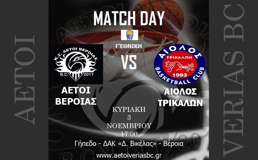 Δεύτερο εντός έδρας παιχνίδι στη Γ Εθνική για τους Αετούς Βέροιας, που υποδέχονται την Κυριακή (3/11, 17.00) τον πρωτοπόρο της βαθμολογίας, Αίολο Τρικάλων.