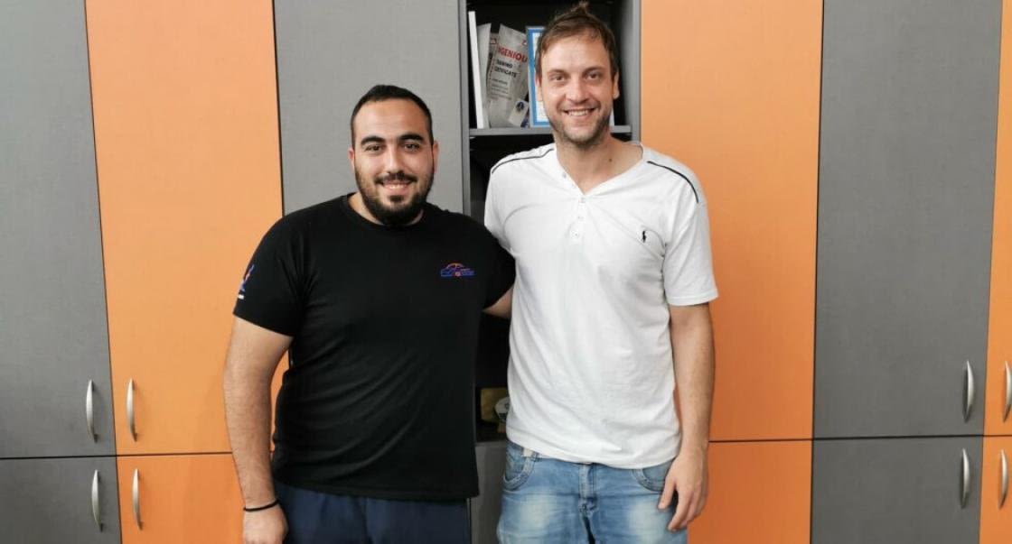 *Στη φωτ. ο Σωτήρης Μπουρδάνος με τον αντιπρόεδρο των Αετών Βέροιας και ιδιοκτήτη της εταιρίας “Ανταλλακτικά Φωτιάδη”, Αντώνη ο οποίος συνέβαλε τα μέγιστα για τη μεταγραφή του έμπειρου guard στην ομάδα.
