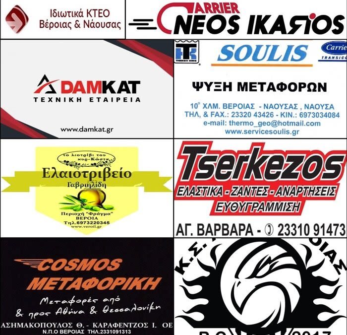 Με ιδιαίτερη χαρά ανακοινώνουμε πως και φέτος θα είναι δίπλα μας επιχειρήσεις που δραστηριοποιούνται στην περιοχή και εμπιστεύονται την προβολή τους μέσα από τις δραστηριότητες της ομάδας.
