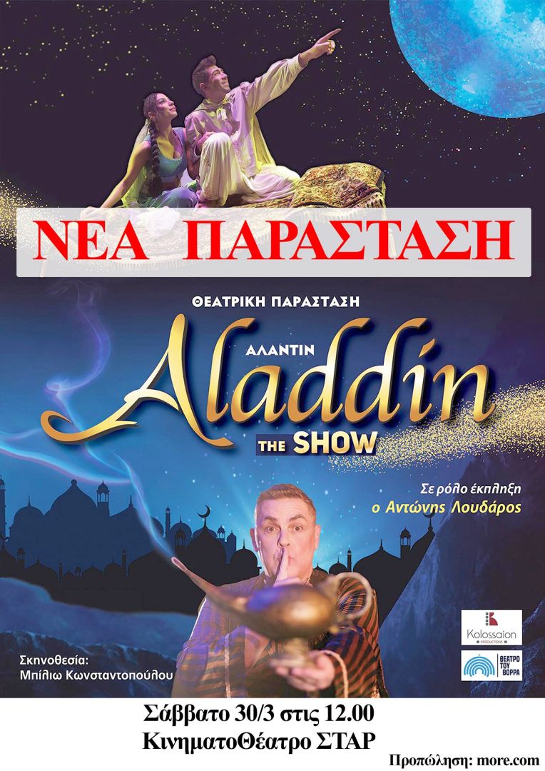 ΑΛΑΝΤΙΝ THE SHOW μετά την πολύ μεγάλη αγάπη που μας δείξατε ΕΡΧΟΜΑΣΤΕ ΞΑΝΑ για μία μοναδική παράσταση στη Βέροια στο Κινηματοθέατρο ΣΤΑΡ το Σάββατο 30 Μαρτίου 2024 στις 12:00.