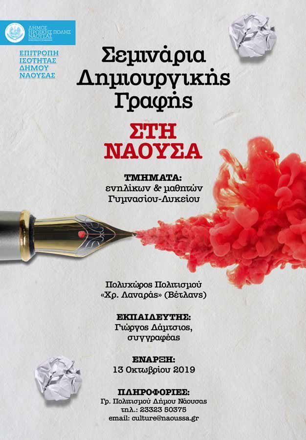 γυμνασίου – λυκείου με εκπαιδευτή τον συγγραφέα κ. Γιώργο Δάμτσιο. Τα σεμινάρια