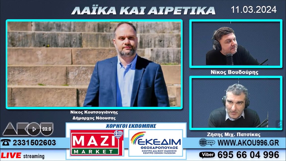 Θετική είδηση έβγαλε η συνέντευξη του δημάρχου Νάουσας το μεσημέρι της Δευτέρας(12/3/2024) στον ΑΚΟΥ 99.6, αφού όπως ανακοίνωσε ο Νίκος Κουτσογιάννης συνεργάζεται στενά με τον αντιδήμαρχο Τουρισμού του δήμου Βέροιας Λάζαρο Ασλανίδη για να πραγματοποιήσουν κοινές εκδηλώσεις, ενώ ξεκαθάρισε ότι πρέπει να αντιληφθούμε ότι είναι κοινό το τουριστικό προϊόν και μόνο με διαδημοτική συνεργασία θα έχουμε τύχη στην τουριστική αγορά. Συγκεκριμένα ο δήμαρχος Νάουσας ανέφερε: «Με τον αντιδήμαρχο Τουρισμού του δήμου Βέροιας Λάζαρο Ασλανίδη έχουμε εξαιρετική επικοινωνία και συνεργασία, κινούμαστε στο ίδιο μήκος κύματος για την ανάπτυξη συνεργειών γιατί μόνο αν λειτουργήσουμε συντονισμένα και αντιληφθούμε ότι το τουριστικό προϊόν είναι ενιαίο θα έχουμε τύχη στην τουριστική αγορά. Να σας ανακοινώσω ότι είμαστε σε συνεννοήσεις με τον δήμο Βέροιας και βρισκόμαστε σε καλό δρόμο για να πραγματοποιήσουμε κοινές εκδηλώσεις κάτι που οφείλουμε για το καλό όλων των δημοτών και την ανάπτυξη και των δύο δήμων. Πρέπει να έχουμε ως στόχο ο επισκέπτης που έρχεται στη Ημαθία να την γνωρίσει στο σύνολό της, να του δείξουμε ότι είμαστε ολοκληρωμένος τουριστικός προορισμός, ώστε να τον κρατήσουμε όσες περισσότερες μέρες γίνεται. Αυτό μπορεί να επιτευχθεί μόνο με συνεργασία κάτι που πραγματοποιούμε ήδη με τον κ. Ασλανίδη, έχοντας κοινή περπατησιά, κάτι για το οποίο είμαι ιδιαίτερα χαρούμενος».