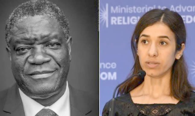Ο γυναικολόγος Denis Mukwege από το Κονγκό και η γιαζίντι Nadia Murad τιμώνται με το Νόμπελ Ειρήνης 2018 για τις προσπάθειές τους κατά της χρήσης σεξουαλικής βίας ως πολεμικού όπλου.