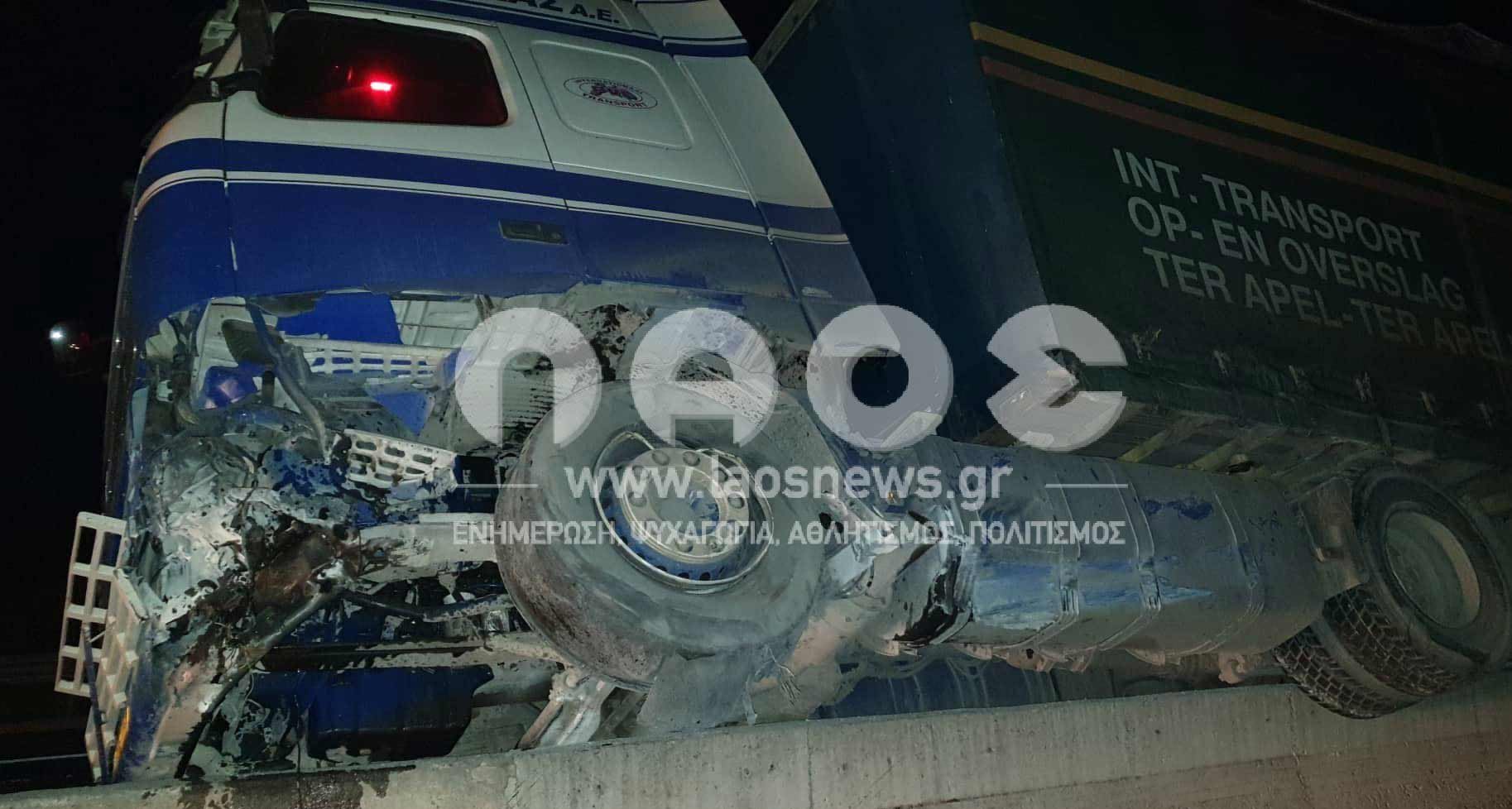 Νταλίκα «καβάλησε» το διαχωριστικό διάζωμα και συγκρούσθηκε με δύο διερχόμενα αυτοκίνητα.