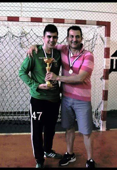 Στις φωτογραφίες ο Ντίνος Στανκίδης με τον μέντορά του Κύρο Σαράφη [κάτω αριστερά] και κατά την βράβευσή του ως καλύτερος τερματοφύλακας στο πανελλήνιο πρωτάθλημα παίδων 2019 [κάτω δεξιά].