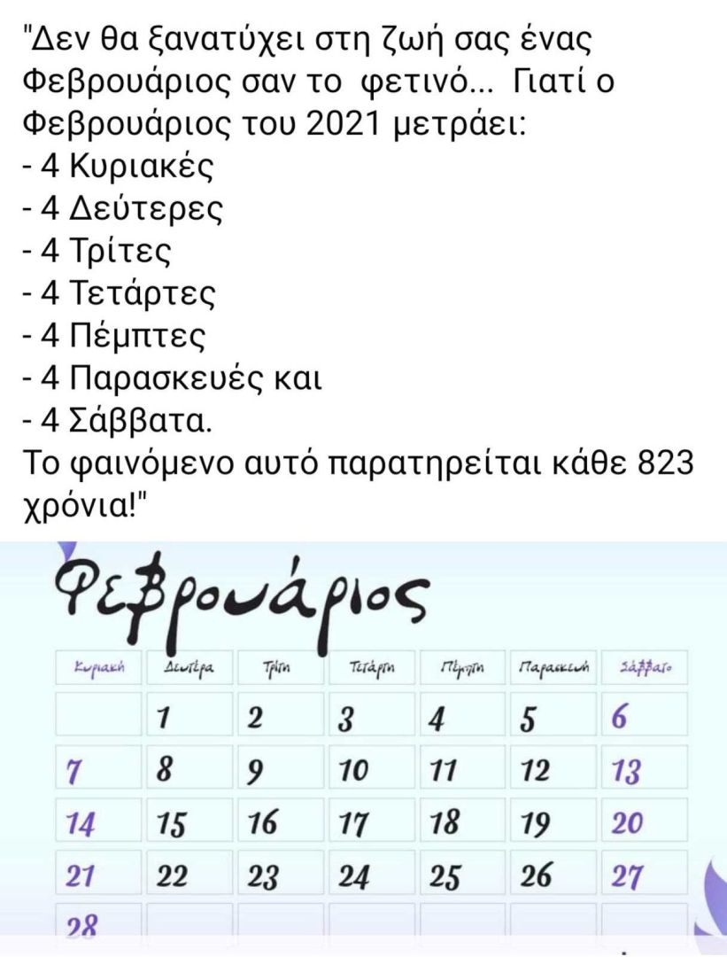Ο φετινός «πλήρης» Φεβρουάριος κάθε 823 χρόνια!!!